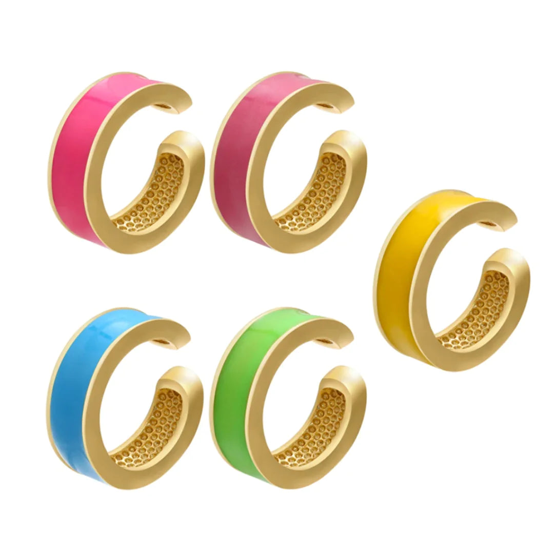 Color Splash Alert! Meet the drip oil painted Amber Ear Cuffs ‚¬š ¬ €š¬Å€œ the ultimate ear candy in living color! Made with a fluid, dripping effect, perfect for the creative souls and color enthusiasts, it's like wearing a piece of art. No piercings? They say, "No biggie!" These trendy ear cuffs are here to give you all the pizzazz without the pierce.